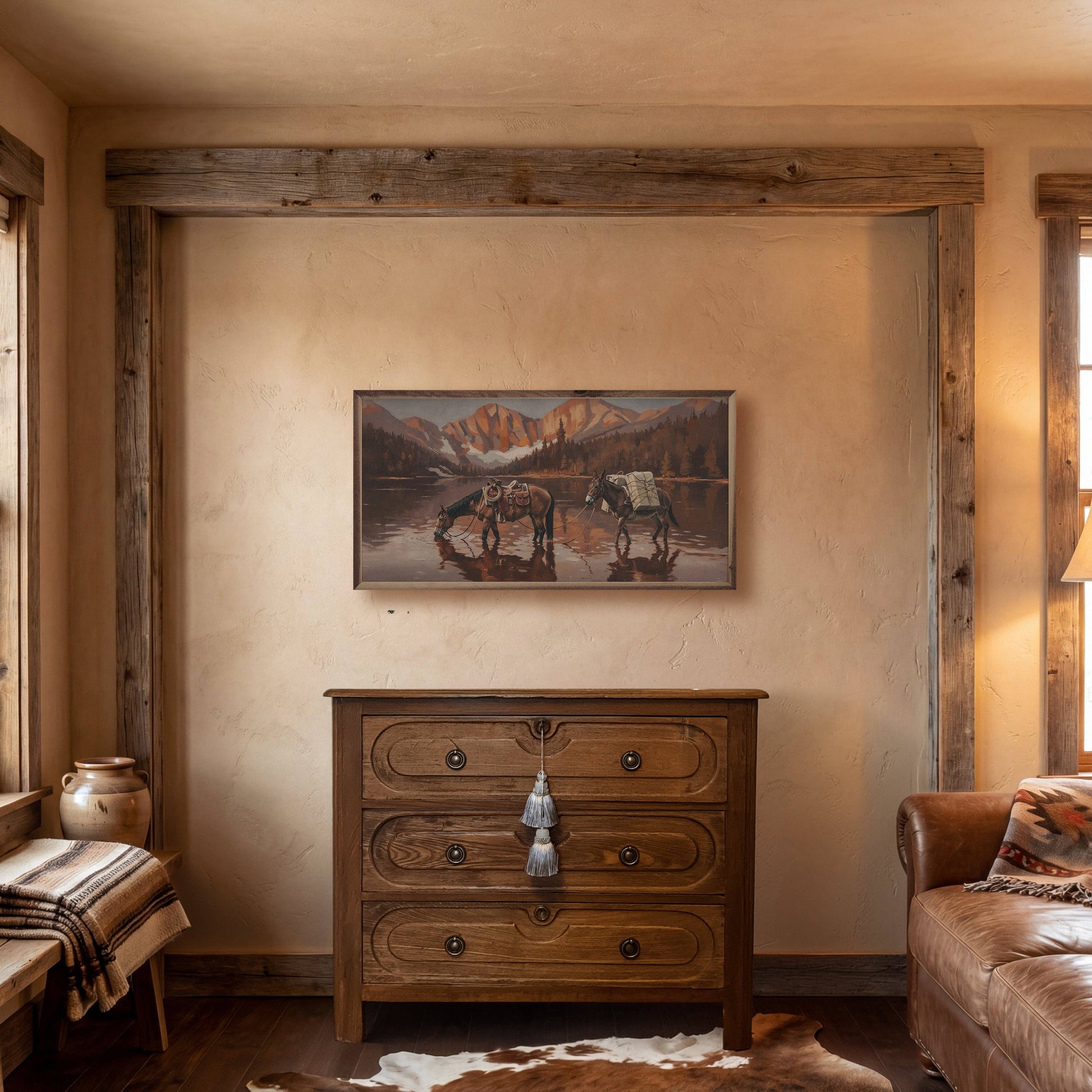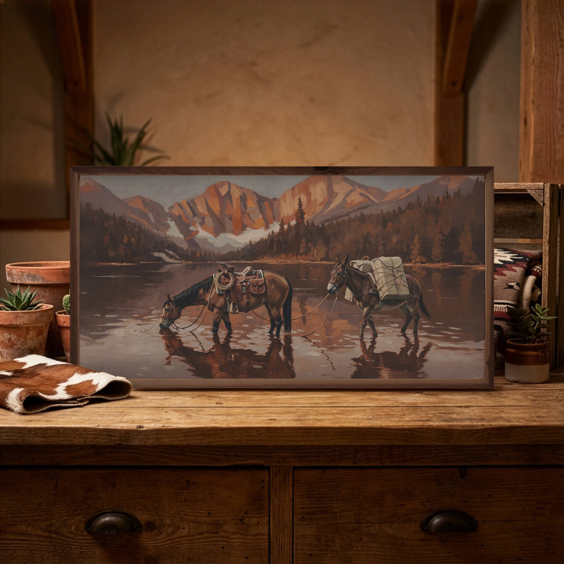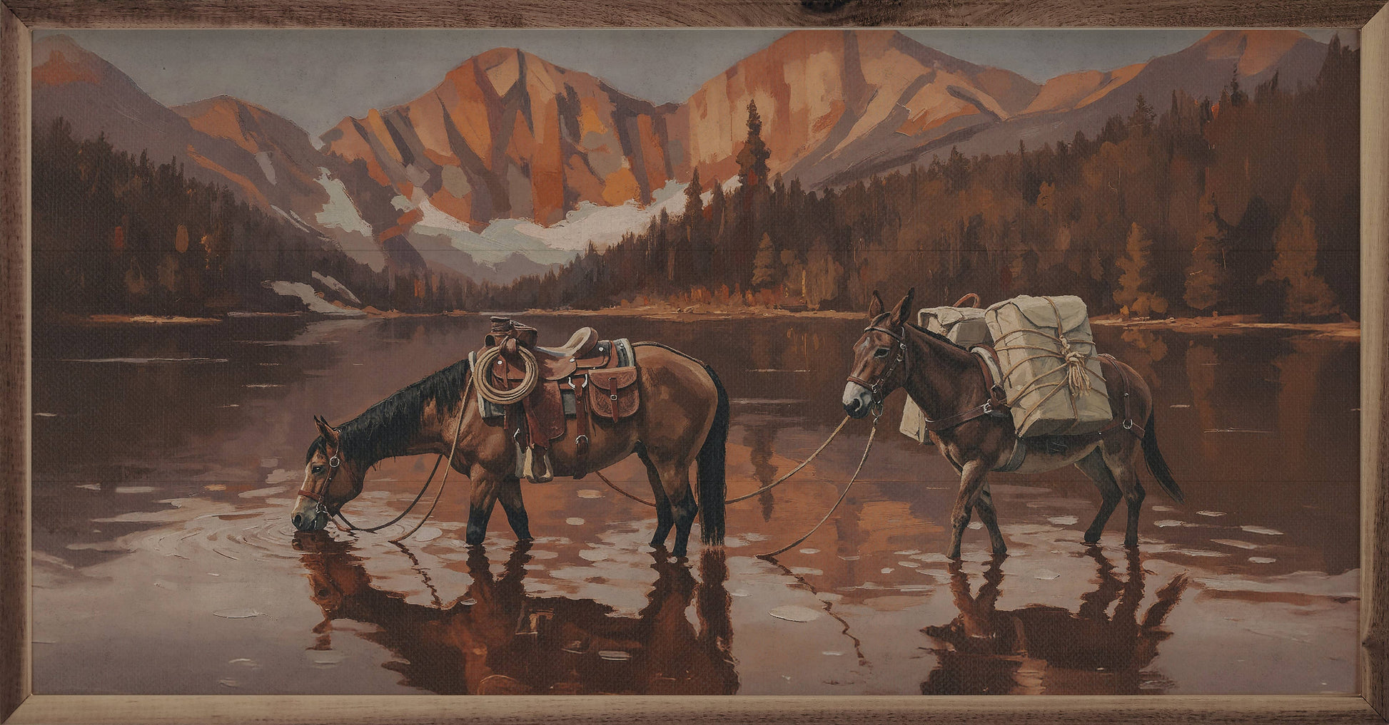 Featuring a solid wood insert with intricate, rustic western designs, this piece is framed in rich walnut to showcase the natural wood grain. With its rugged yet elegant craftsmanship, it’s a standout addition to any home décor collection, offering timeless style and quality. MADE IN AMERICA (EDGEWOOD, IA)