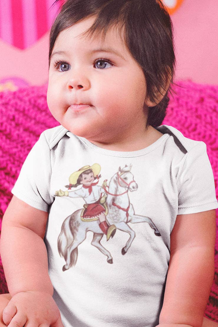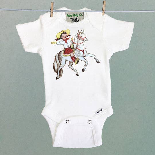 Cowgirl and White Horse One Piece Baby Bodysuit