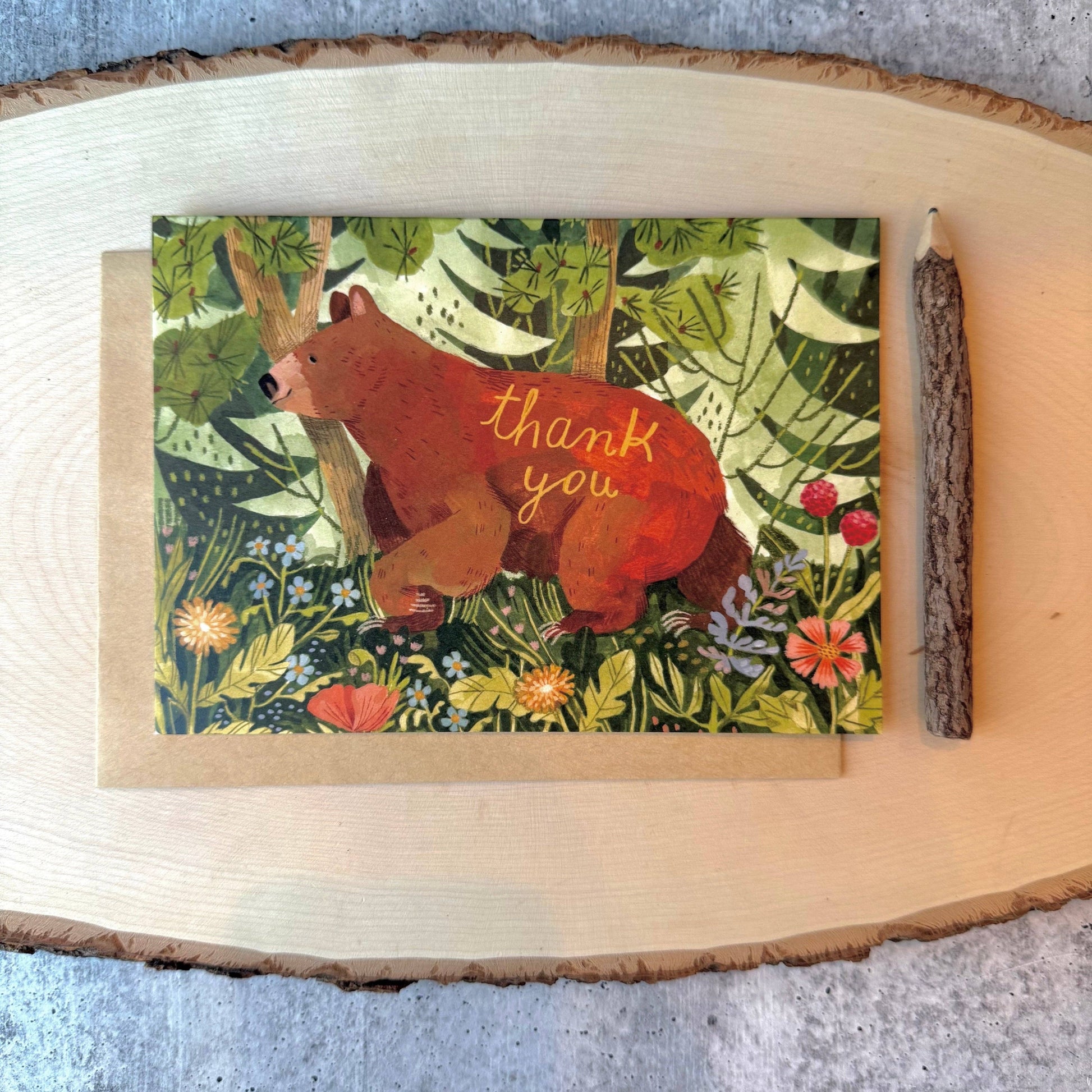 Forest Bloom Thank You Card. Reproduction of my original artwork using a combination of watercolor and/or gouache paints and colored pencils. 5”x7” landscape style card, printed on premium 120lb card stock and is left blank inside for you to write your own personal message. Includes a kraft envelope and will come in protective cellophane packaging.