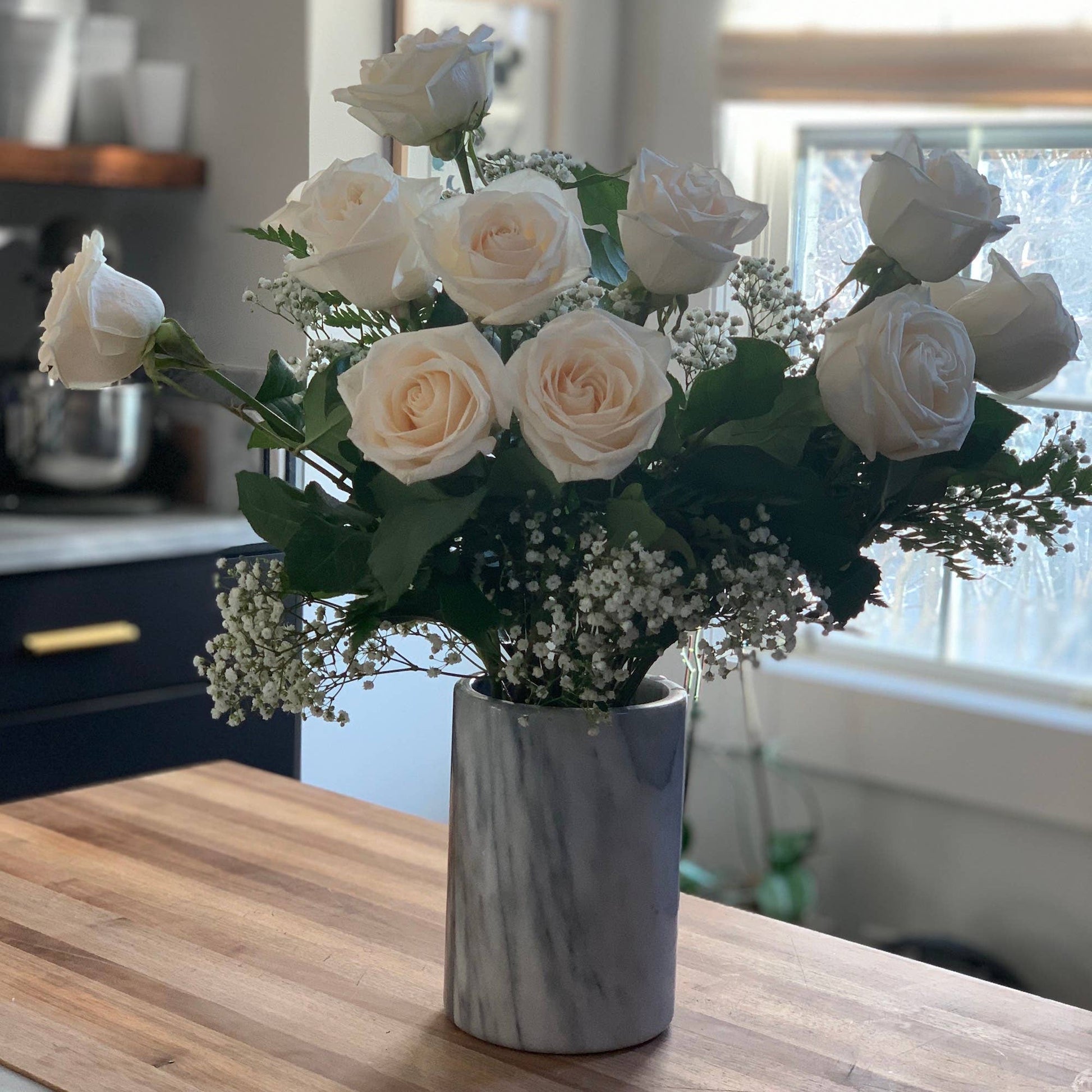 Marble Utensil Holder, White, 4.75" x 4.75" x 7"