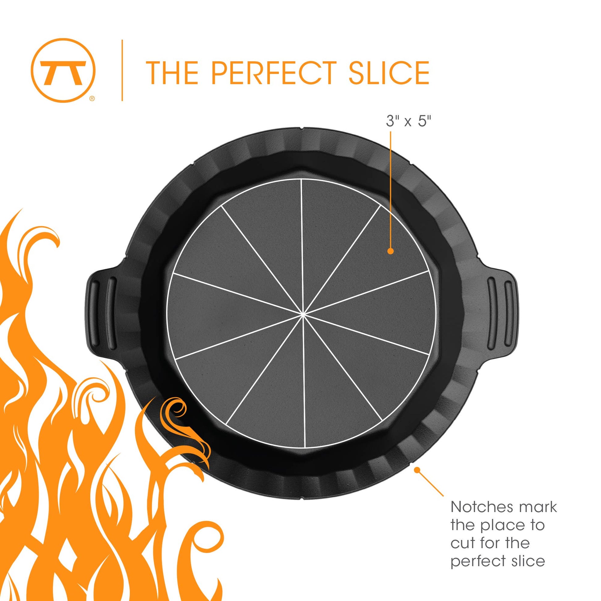 • MAKES 10” PIE: Make a delicious 10 inch pie with the Outset Cast Iron Pie Pan! Whether using the oven, stove, or grill this pan is up for the task. Try using it for your next pie or cornbread bake! • CONSISTENT RESULTS: Because of the cast iron construction the pan evenly distributes heat for bakery quality results right at home! • CAST IRON: Outside of even heat distribution the cast iron pie pan is durable and naturally non-stick. Making it the ideal pan for countless pie and corn bread recipes. • NOTCHES FOR SLICING: Notches along the edge of the pan show you where to cut for the perfectly sized slice. • MEASUREMENTS AND CARE: Makes a 10” pie. Pan measures 11.5” x 13” x 2.5”. Not dishwasher safe. Do not store pies with acidic acids in pan as the acids can damage cast iron.