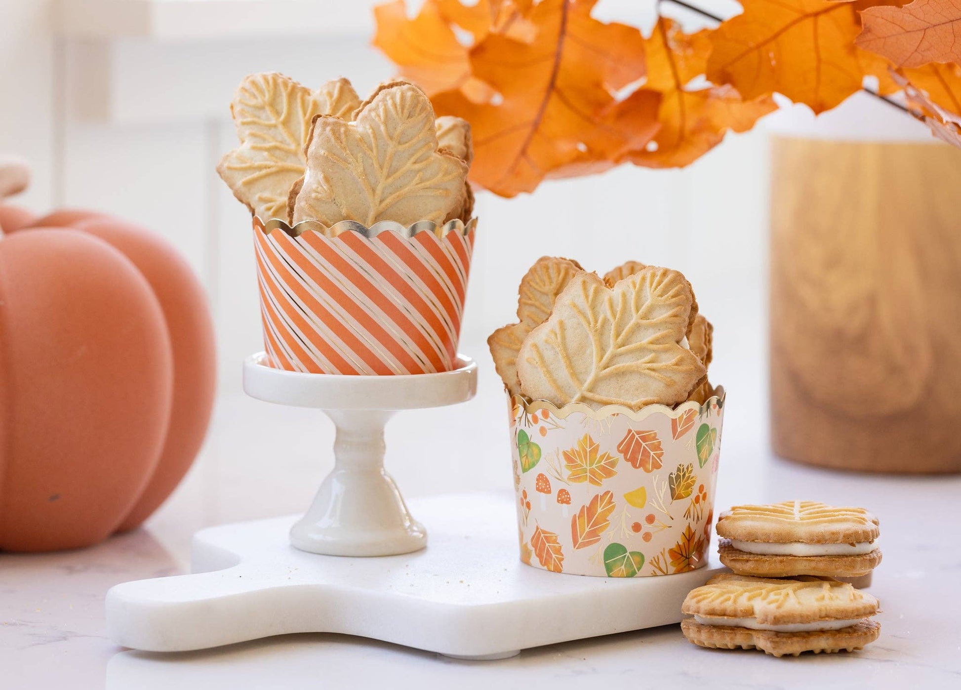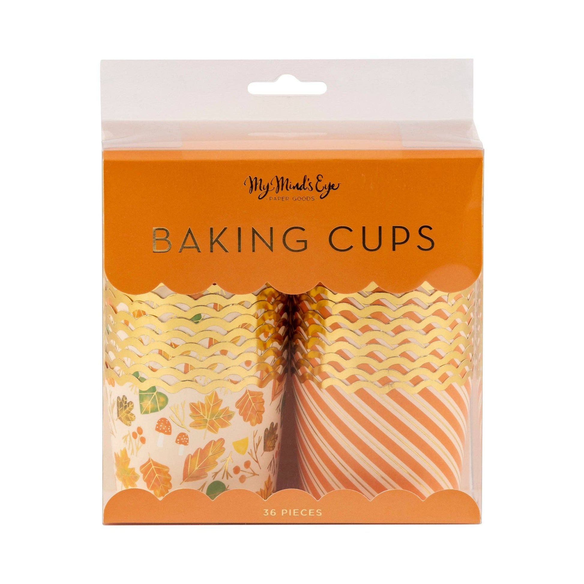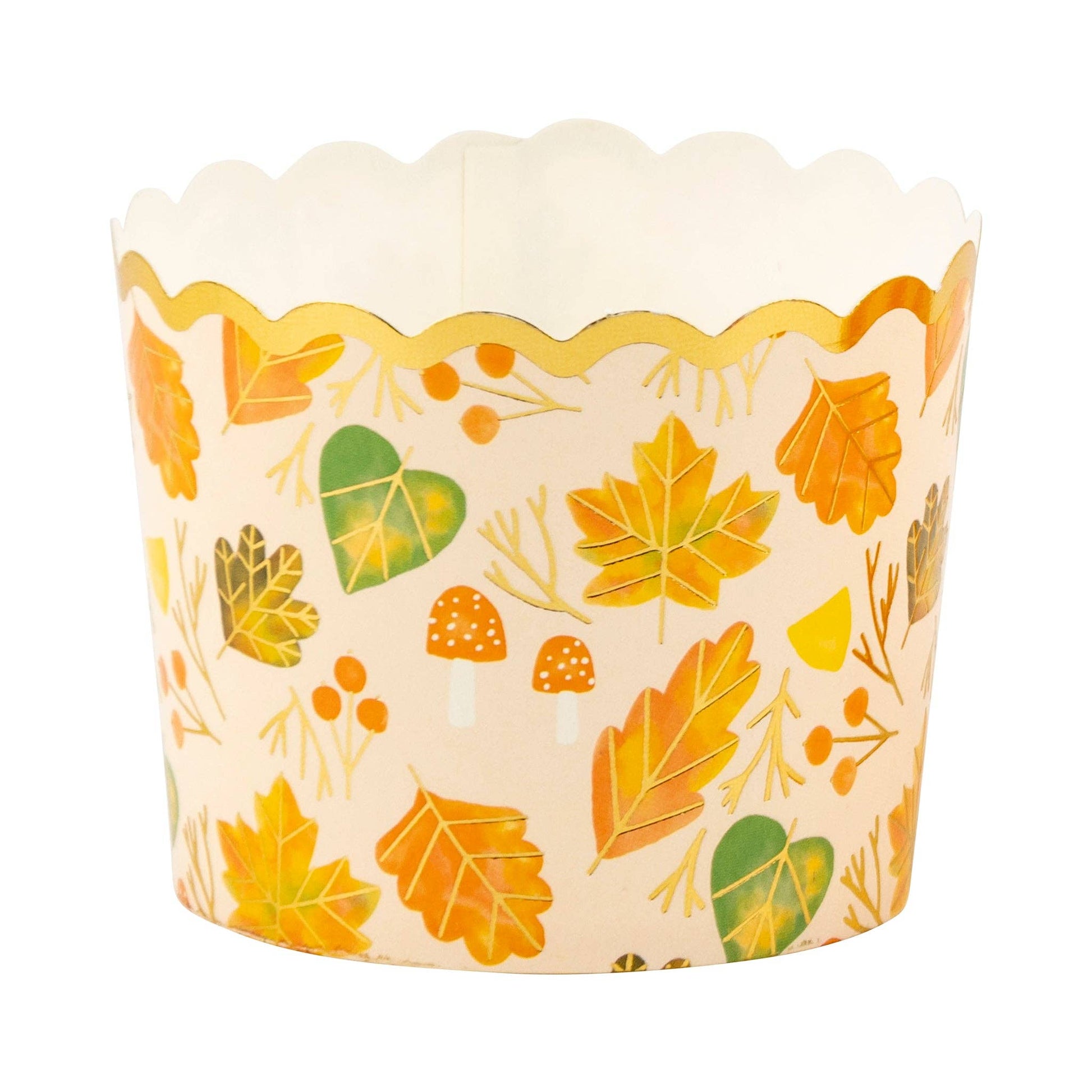 Create whimsical woodland baked goods with these gold foil forest mushroom baking cups. Embrace the fall season with these charming cups that add a touch of magic to your desserts. Perfect for parties, gatherings, or just adding some fun to your baking routine. Mushrooms never looked so cute! • 36 baking cups in each box set • 18 of 2 coordinating designs. • gold foil